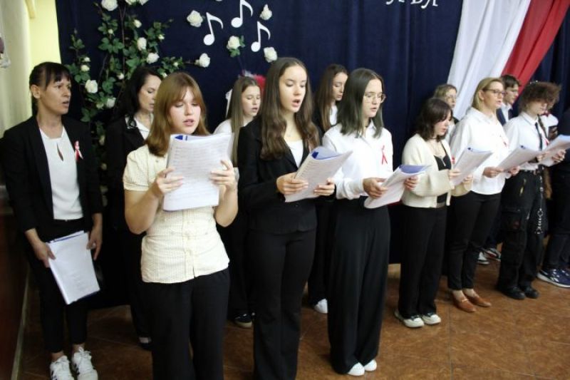Na zakończenie występu wszyscy odśpiewaliśmy trzy patriotyczne pieśni. Wydarzenie było naszym hołdem na część im Niepodległej oraz wyrazem naszego patriotyzmu.