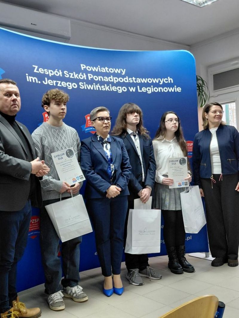 W dniu 15.01.2026r.odbyło się podsumowanie konkursu „Legiony a niepodległość Polski w latach 1914-1918. Rola Józefa Piłsudskiego” i wręczenie nagród w Powiatowym Zespole Szkół Ponadpodstawowych im. Jerzego Siwińskiego w Legionowie. Trzecie miejsce w konkursie zajął uczeń klasy 3b- Franciszek Turkowski a pierwsze miejsce uczennica klasy 1a –Nadia Niemczyk. Ogromne gratulacje!