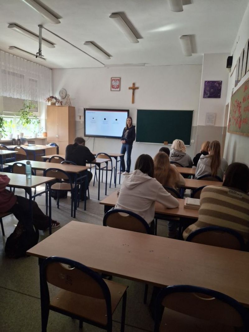 17 marca 2026 r. uczniowie klasy 3b o profilu medialnym, w ramach doradztwa zawodowego, mieli możliwość spotkania ze studentką drugiego roku Wydziału Historii Uniwersytetu Warszawskiego – panią Julią Lewandowską. Podczas spotkania pani Julia zapoznała uczniów ze specyfiką studiów historycznych, perspektywami zawodowymi po ich ukończeniu oraz ofertą edukacyjną Uniwersytetu Warszawskiego. Mamy nadzieję, że spotkanie to pomoże w przyszłości licealistom z klasy medialnej dokonać świadomego wyboru kierunku studiów.