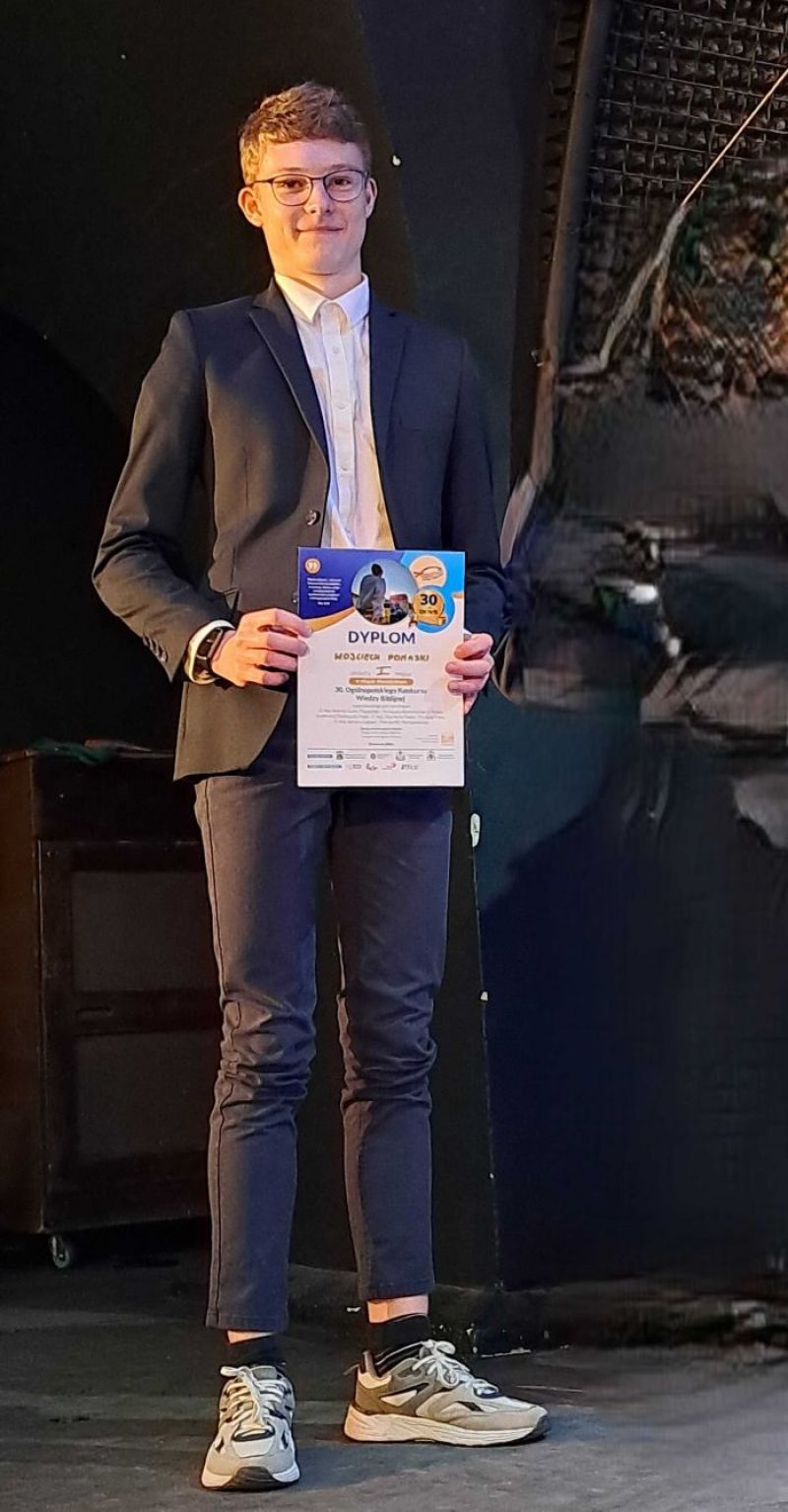 15 kwietnia 2026 Wojtek Pomaski z klasy 3c zdobył pierwsze miejsce w etapie diecezjalnym Ogólnopolskiego Konkursu Wiedzy Biblijnej i awansował do finału ogólnopolskiego. Brawo!!!