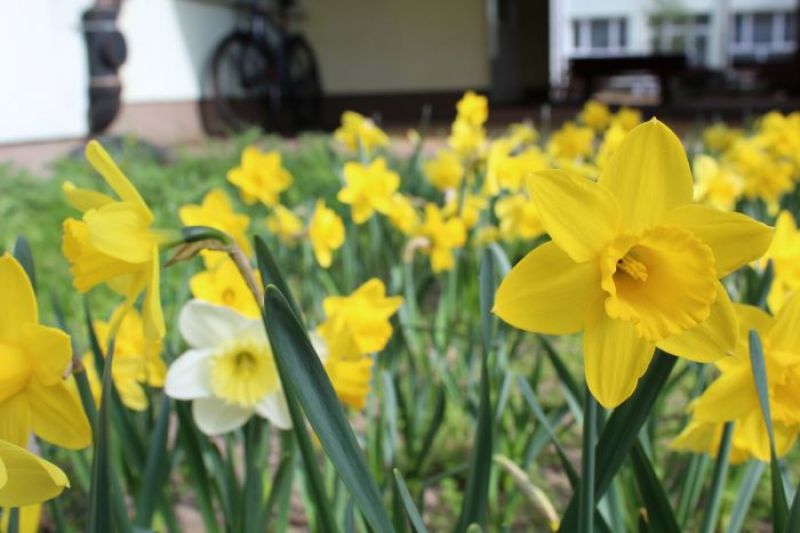 Nasze Pole Nadziei zakwitło na patio! W październiku zasadzone przez naszych uczniów, teraz wszystkie żonkile w pełnej krasie! Kwiaty, które symbolizują nadzieję…